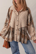 Oatmeal Boho Floral Plaid Patchwork Waffle Knit Distressed Jacket