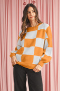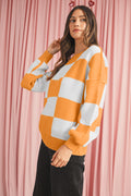 Orange & White Plaid Exposed Seam Bishop Sleeve Sweater