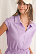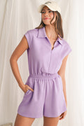 Orchid Bouquet Solid Color Cap Sleeve Zipper Romper