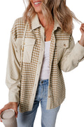 Parchment Houndstooth Corduroy Patchwork Flap Pocket Shacket