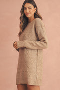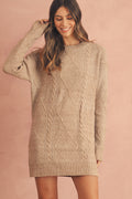 Parchment Twist Cable Knit Drop Shoulder Loose Fit Sweater Dress