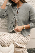 Philippine Gray Sweet Bow Front Cropped Knit Cardigan