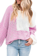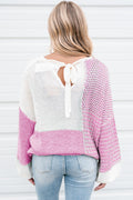 Pink Colorblock Tie Back Drop Shoulder Knit Sweater