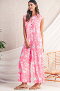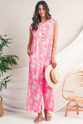 Pink Floral Print Sleeveless Wide Leg Jumpsuit