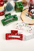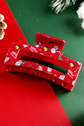 Racing Red Cartoon Christmas Pattern Print Hollow Out Hair Claw Clip