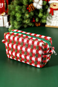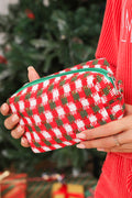Racing Red Christmas Crochet Zipper Makeup Bag