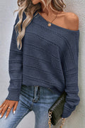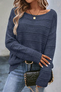 Real Teal Boat Neck Drop Shoulder Pointelle Knit Sweater