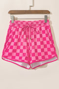 Rose Checkered Drawstring Elastic Waist Casual Shorts