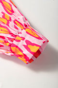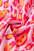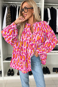 Rose Red Leopard Print Balloon Sleeve Loose Blouse
