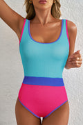 Rose Red Textured Colorblock One Piece Swimsuit