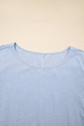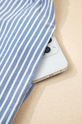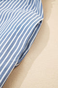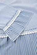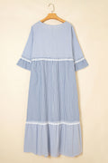 Sky Blue Crisscross Lace Detail Mixed Striped Patchwork Plus Size Dress
