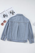 Sky Blue Stripe Washed Oversized Pocketed Denim Jacket