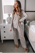 White Allover Leopard Print Long Sleeve and Pants Pajama Set