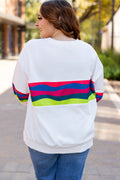 White Colorful Stripe Plus Size Sweatshirt