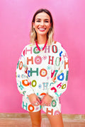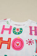 White Ho Ho Ho Letter Graphic Christmas Pajama Set