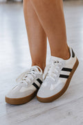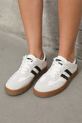 - Stylish and versatile, these lace-up sneakers feature a chic white color with subtle stripes.