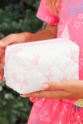 White Sweet Bow Knot Print Quilted Zipper Cosmetic Bag