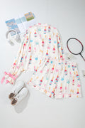 White Wine Glass Print Ribbon Bow Decor Plus Size Pajama Set